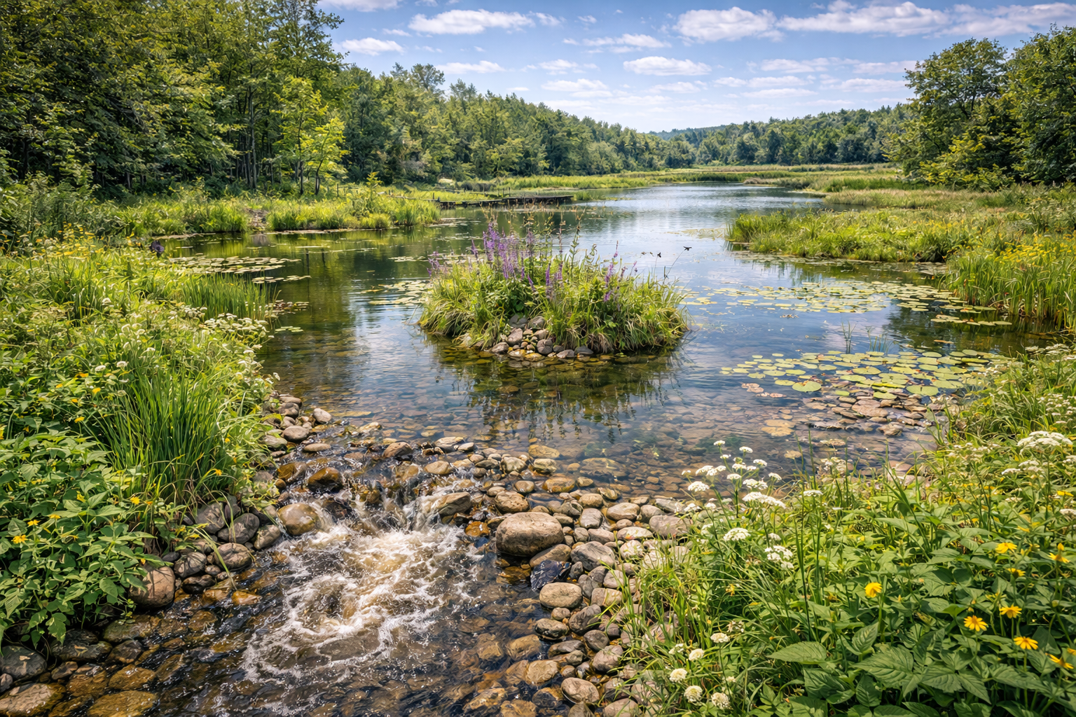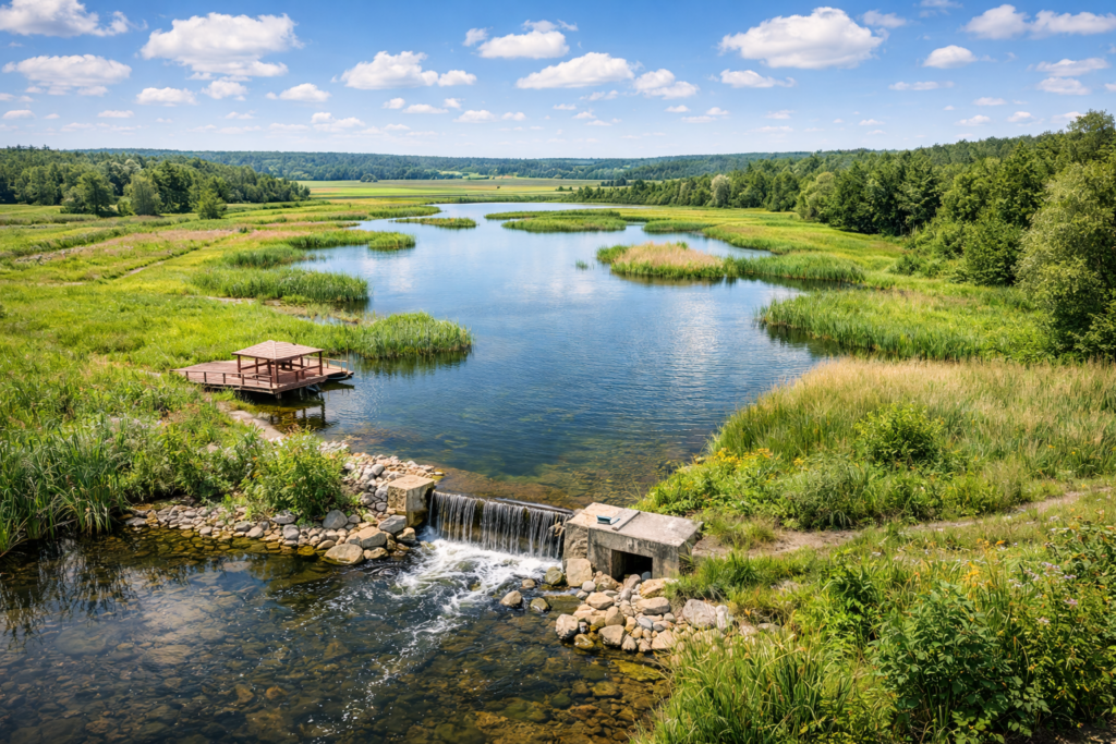 Každý zásah navrhujeme tak, aby co nejvíce využíval přirozené chování vody v území. Preferujeme přírodě blízká řešení – tůně, biotopy, revitalizace toků, retenční a vsakovací prvky, které zvyšují stabilitu krajiny a podporují biodiverzitu.