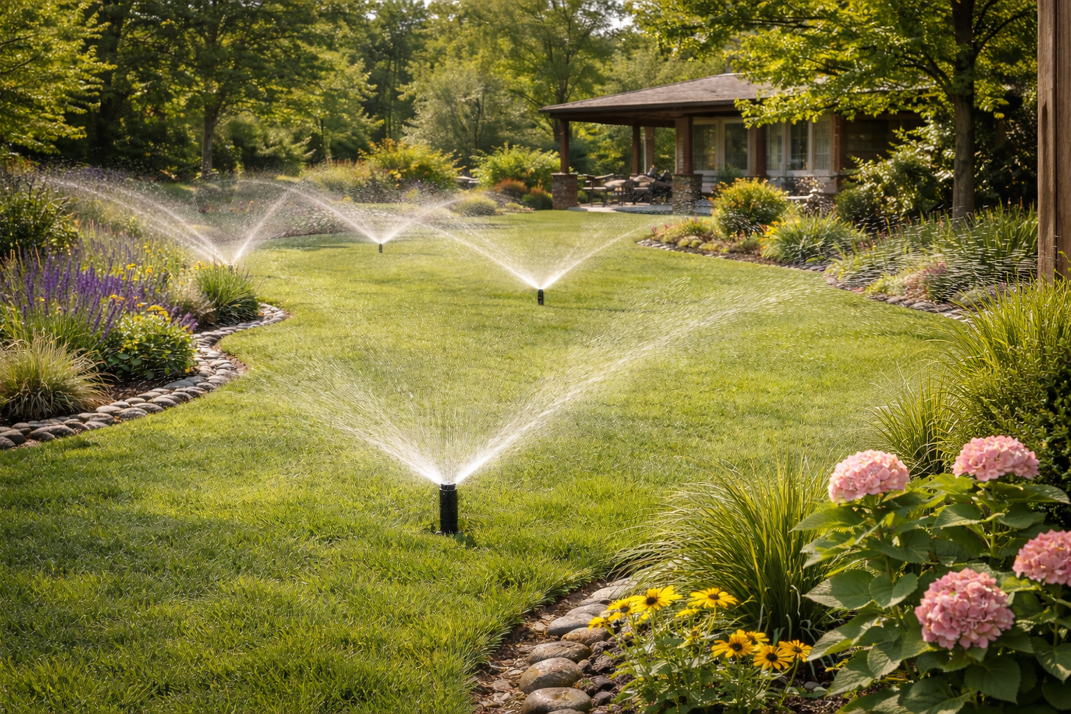Návrh AZS pro soukromé zahrady i větší areály – rozmístění postřikovačů, sekce, tlakové poměry, napojení na zdroj vody a propojení se retenčními či biotopovými nádržemi.